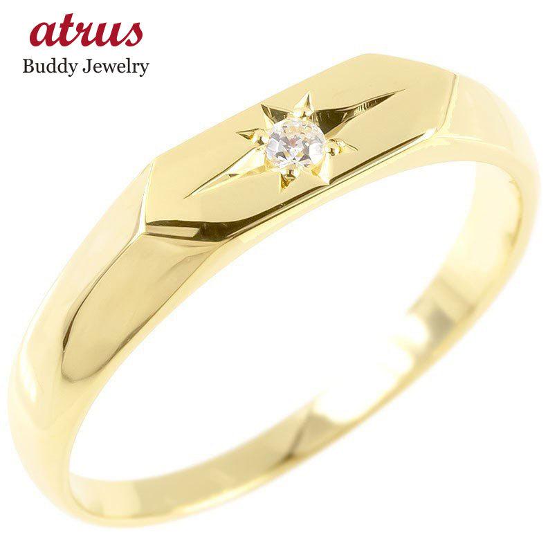 リング メンズ ゴールド メンズ 印台 18金 ダイヤモンド 一粒 指輪 イエローゴールドk18 シンプル ピンキーリング リング 男性 送料無料 dym ジュエリー工房アトラス 通販 Yahoo ショッピング