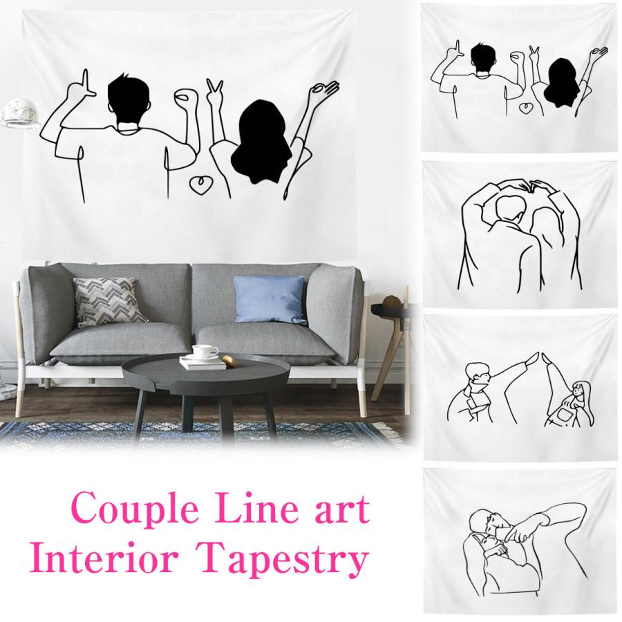 Amazon Co Jp Nd タペストリー 北欧 線画 おしゃれ ナチュラル シンプル 結婚式 ウェディング モダン アート カップル 夫婦 恋人 同棲 愛 部屋 飾り 飾り付け 壁 デコレーション インスタ映え インテリア 布 デザイン1 ホーム キッチン